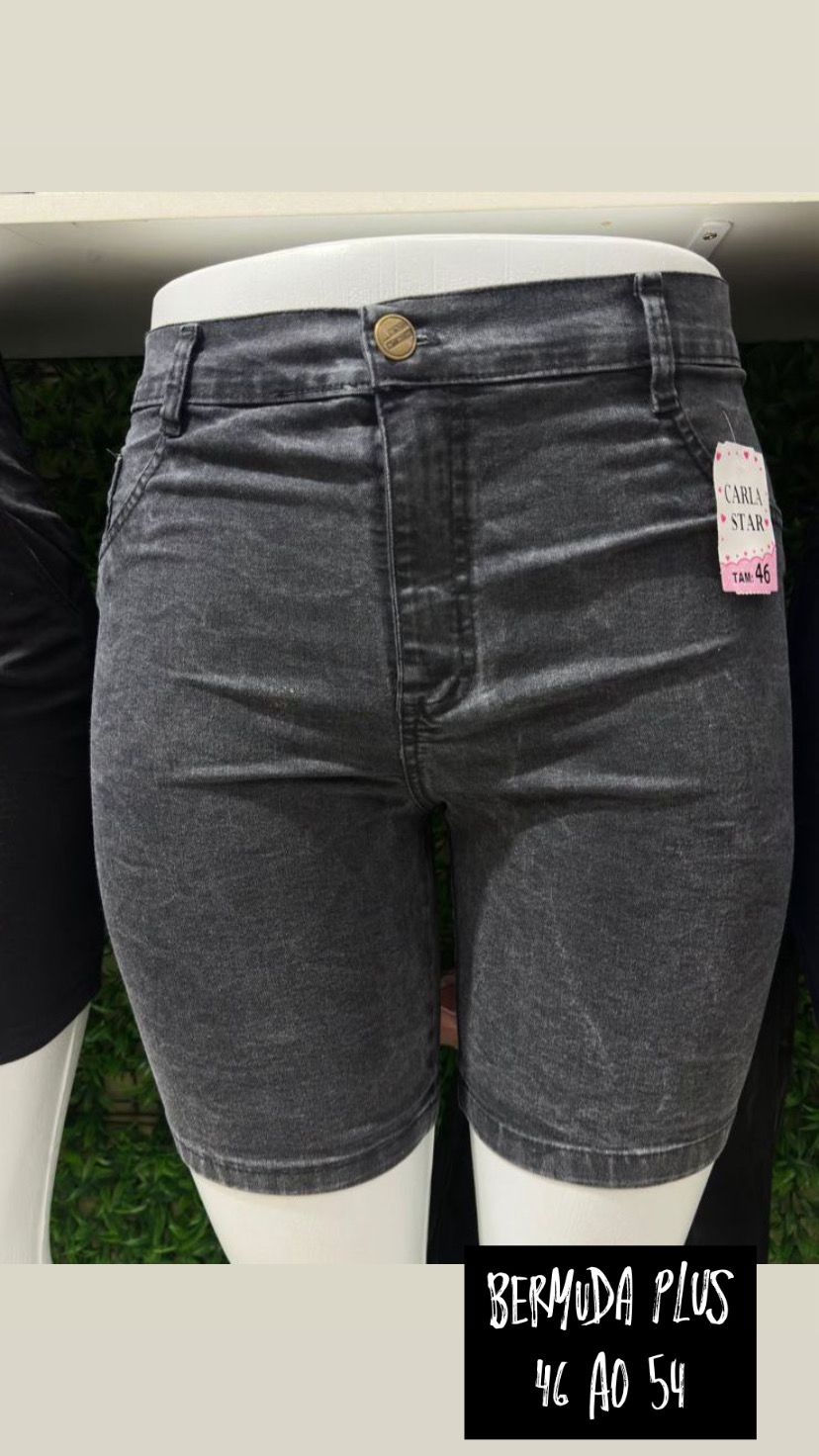 Bermuda Jeans Preta Marmorizada Plus